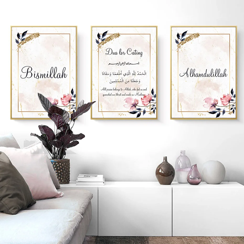 Современная розовая Цветочная мусульманская настенная Картина на хо...