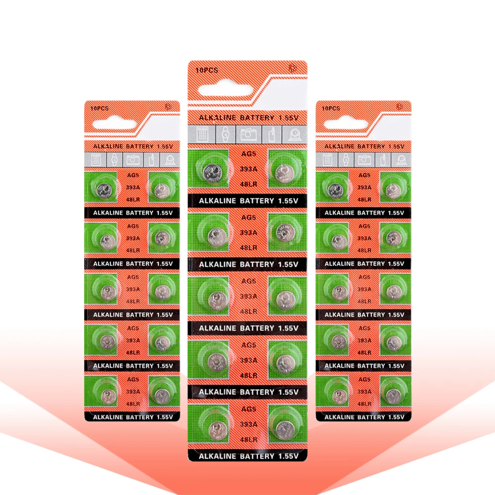 Щелочная батарейка AG5 LR754, 30 шт.3 карты, 1,55 в, кнопки, батарейки 393 SR754 193 393A 48LR G5A AG 5, для игрушек для часов