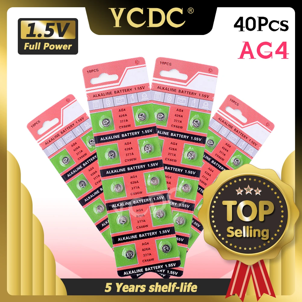 40 шт., щелочные батарейки 1,55 в AG4 LR626 377 377A 177 LR66 SR626SW CX66W, батарейки для часов, игрушек, пультов дистанционного управления