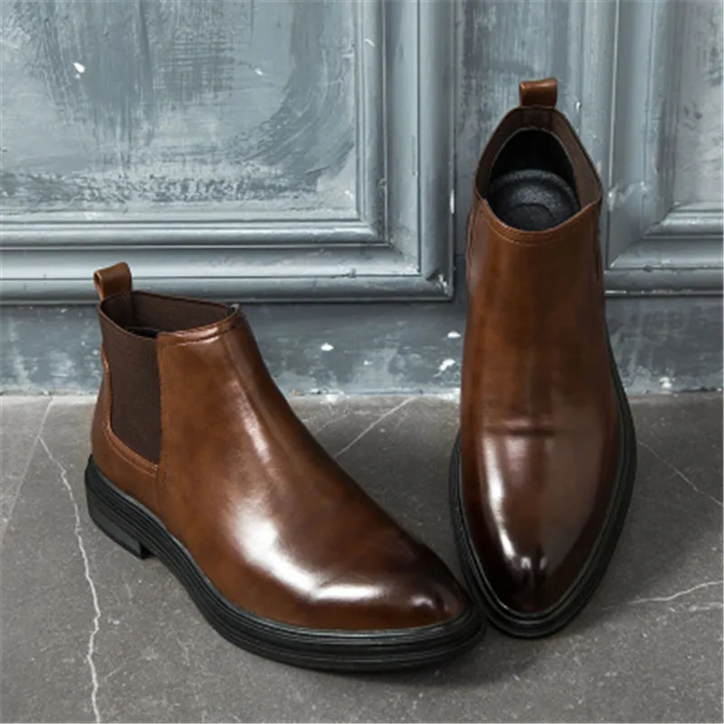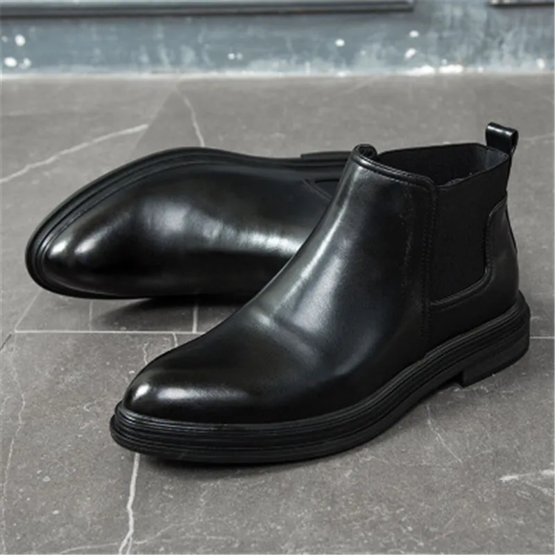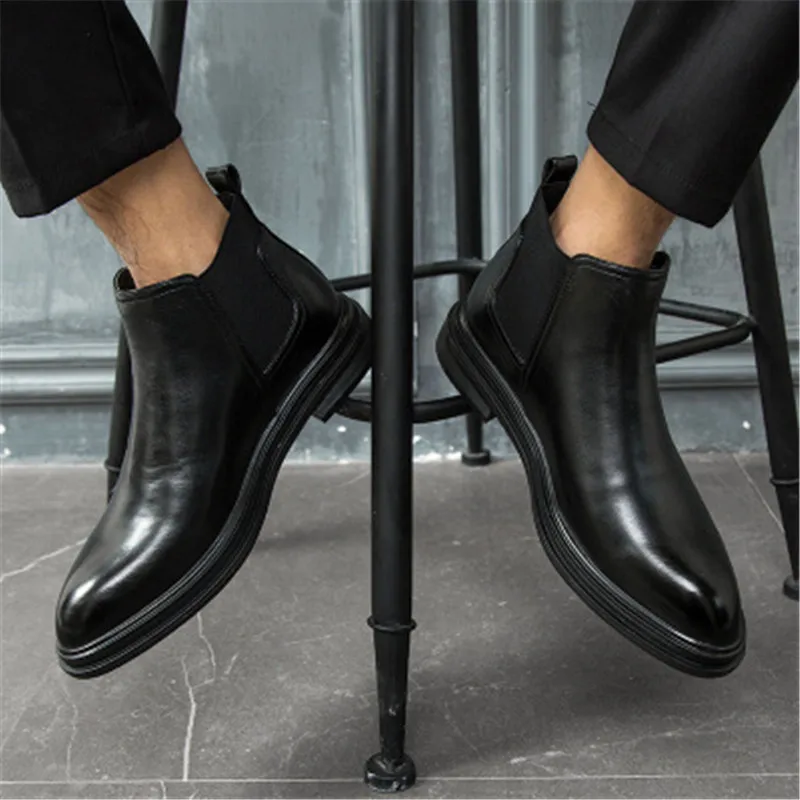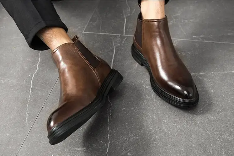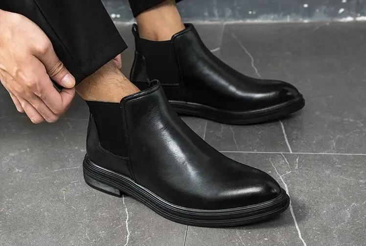 Кожаные ботинки Челси; Мужская обувь; Мужские Ботильоны; Модная Теплая мужская обувь; Сезон осень-зима; Высокие ботинки; Обувь размера плюс 38-47