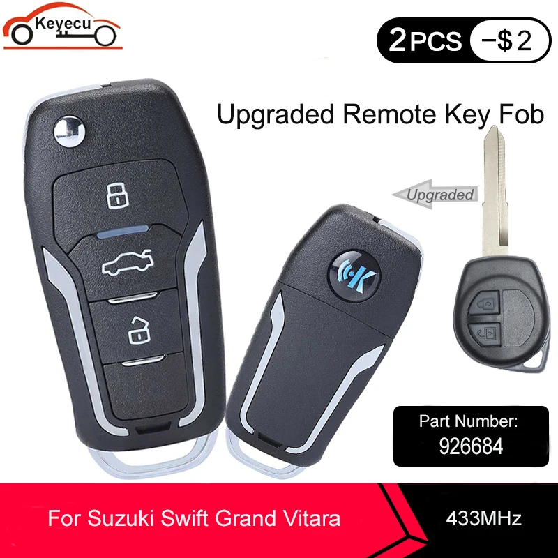 Запасной пульт дистанционного управления KEYECU, 433 МГц, чип ID46, 2 кнопки для Suzuki Swift Grand Vitara 2000- 2008 PN:926684
