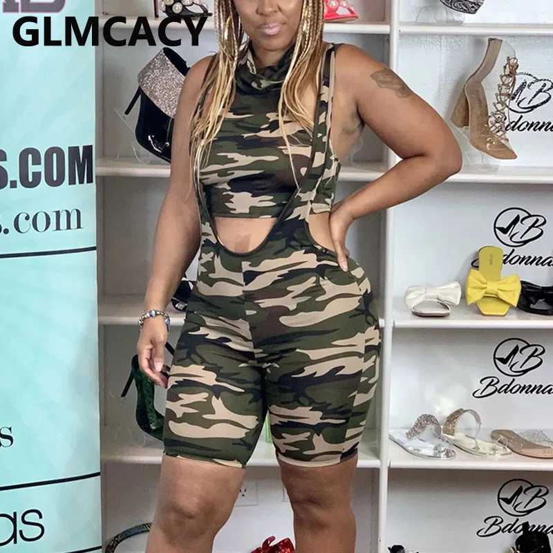 Женские пикантные костюмы с камуфляжным принтом, топ без рукавов и облегающий женский костюм