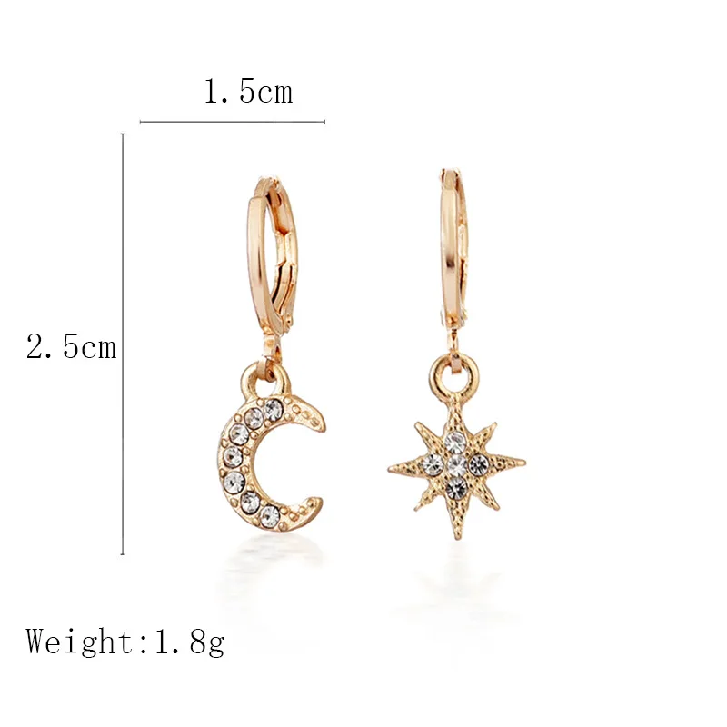 Женские серьги со звездой и луной, Классические асимметричные серьг...