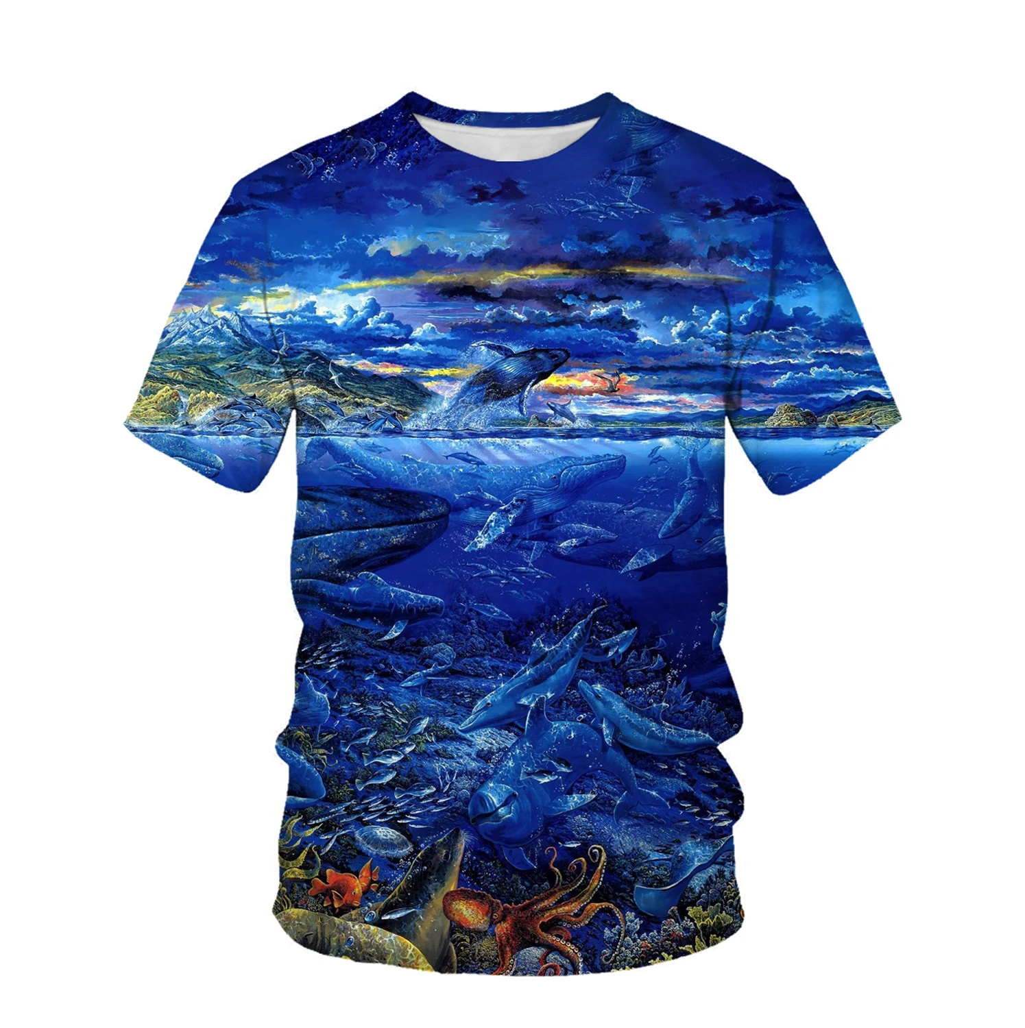 Мужская футболка с рисунком загадочного океана, футболка с 3D рисун...