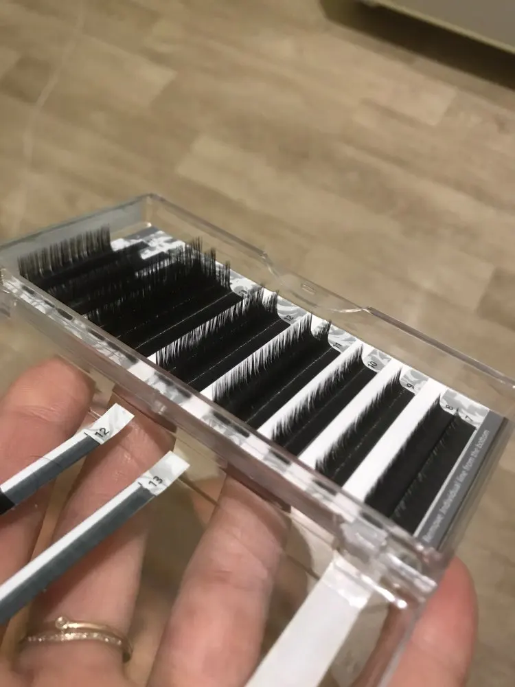 Ресницы шли в Геленджик 3 недели где то, изгиб красивый, в длинных длинах угол равен 90, а короткие длины реснички более пологие, что делает наращивание красивым, т е производитель все продумал и не надо будет комбинировать с длугими изгибами. Толщина 0,12 соответствует 0,10 толщине. Цвет насыщенный чёрный глянцевый.
