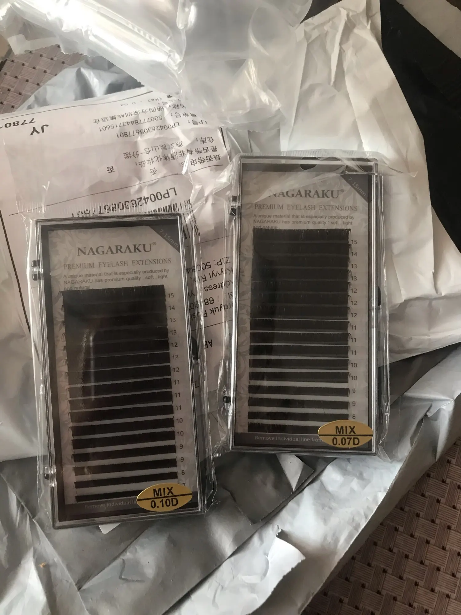Накладные ресницы NAGARAKU, искусственная норка, 16 рядовЧехол, 7 15 мм, D N LC L mix, натуральный индивидуальный макияж