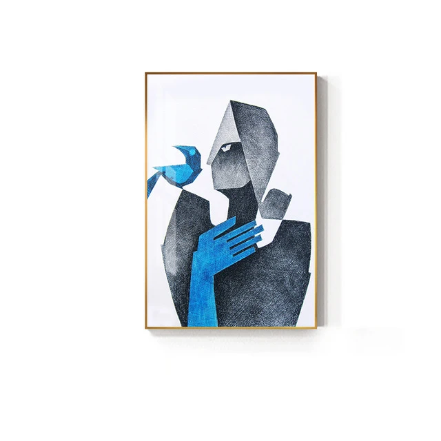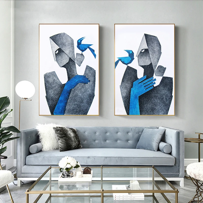 Абстрактная Картина на холсте с синей птицей, Женский плакат и печать, современные линии, Настенная картина для гостиной, домашний декор, без рамки