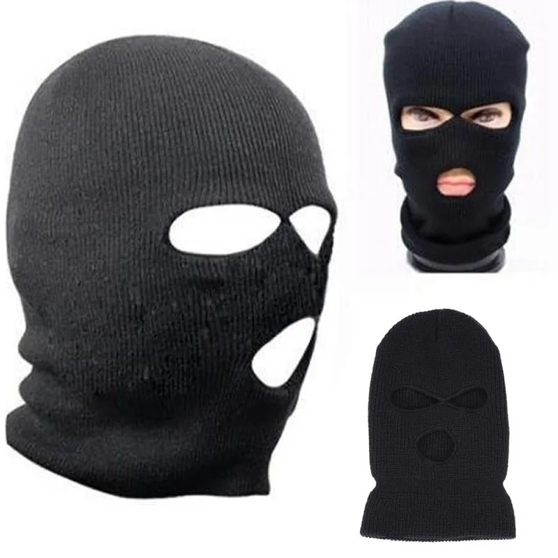 Мотоциклетная Балаклава с 3 отверстиями, черная вязаная шапка, защитная шапка, зимняя шапка, Прямая поставка