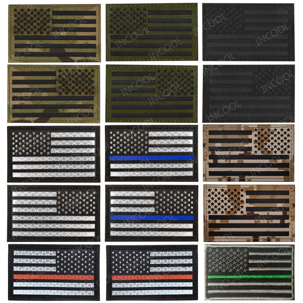 [Спецификация]:ИК Светоотражающие инфракрасные нашивки с 3D вышивкой и левым и правым плечом с американским флагом США Военные Тактические бейджи