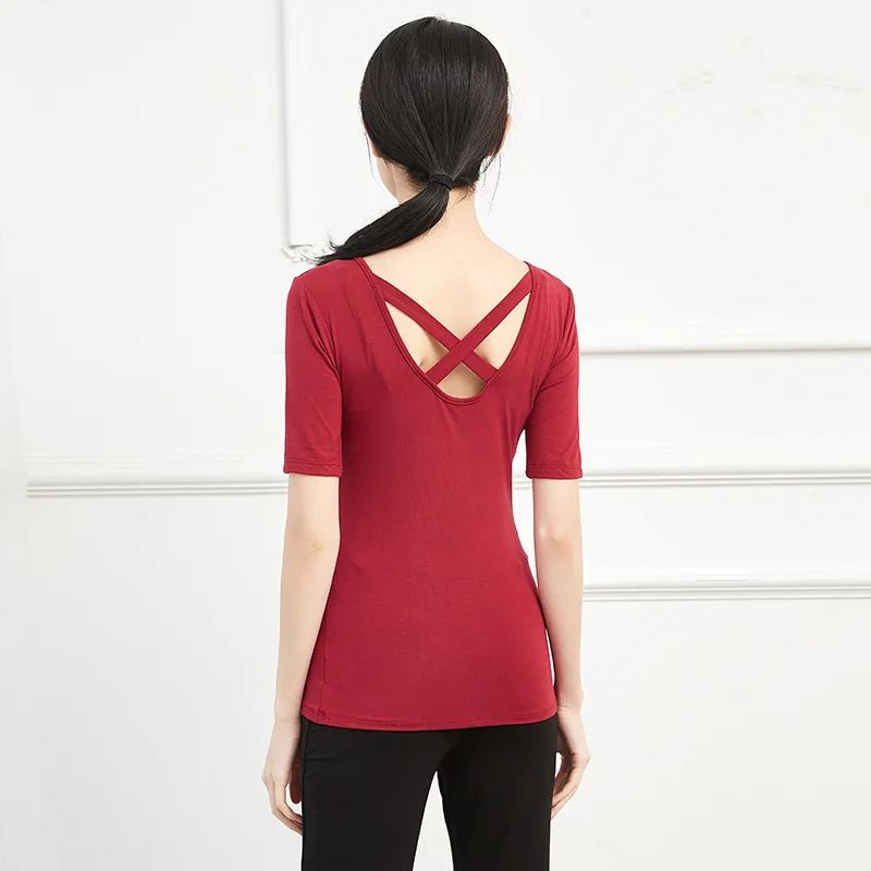 Взрослая модальный длинный рукав сзади крест восточные латинский танец живота топ футболка костюм для женщин танцевальная одежда танцора одежда