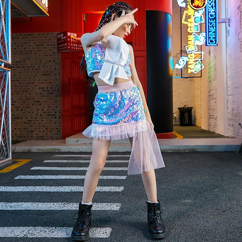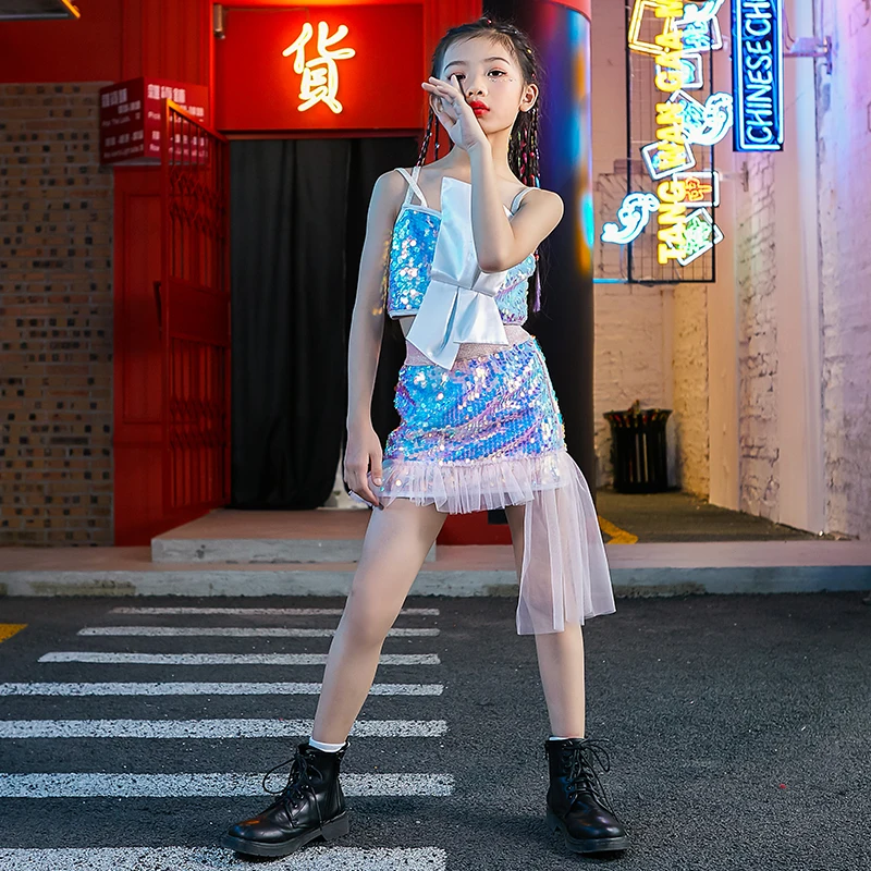 Новинка, джазовые костюмы для девочек, одежда в стиле хип-хоп, модный цветной жилет с блестками, шорты, одежда для чирлидинга и выступлений, сценическая одежда DNV13413
