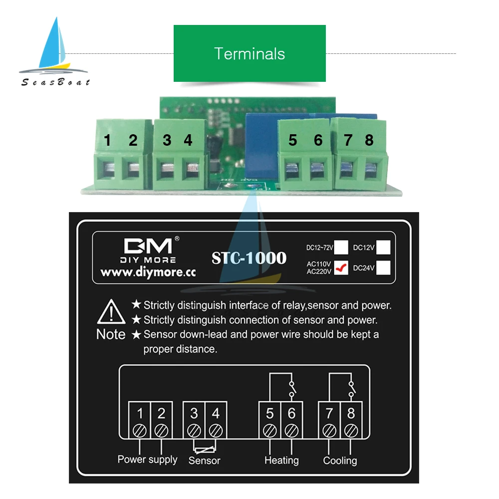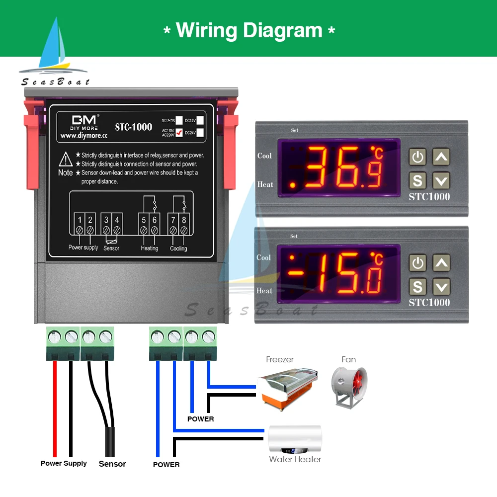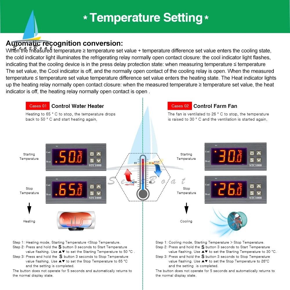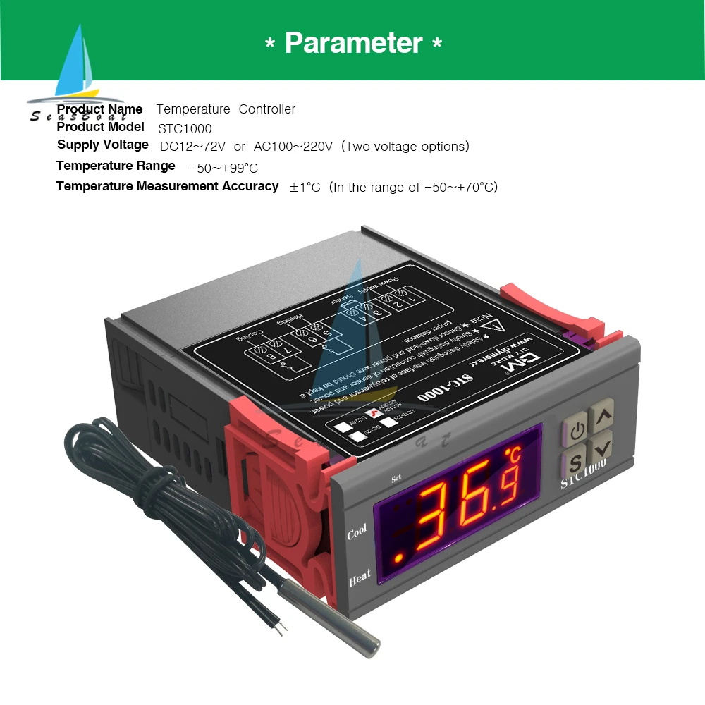 Цифровой регулятор температуры, термостат с STC-1000 LED 1224220 В для нагревания и охлаждения