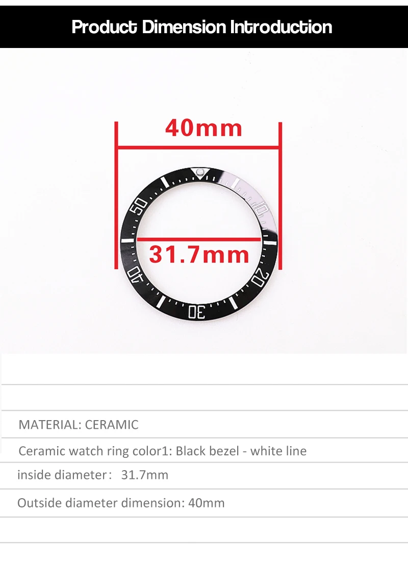 Новинка 40 мм Универсальный черный керамический БЕЗЕЛЬ для часов кл...