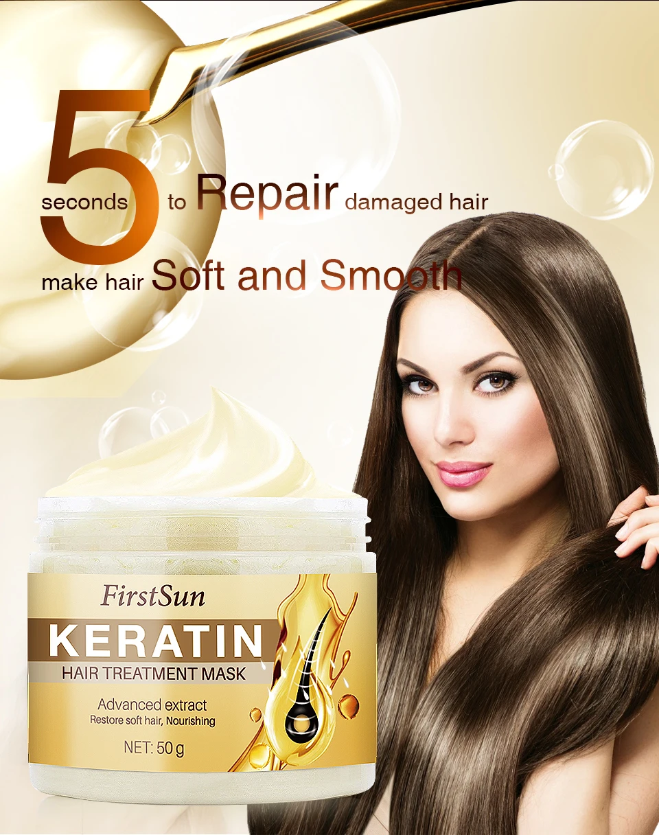 Волшебная кератиновая маска для лечения волос FirstSun 50 мл Эффективно восстанавливает поврежденные сухие волосы 5 секунд питают и восстанавливают мягкие волосы