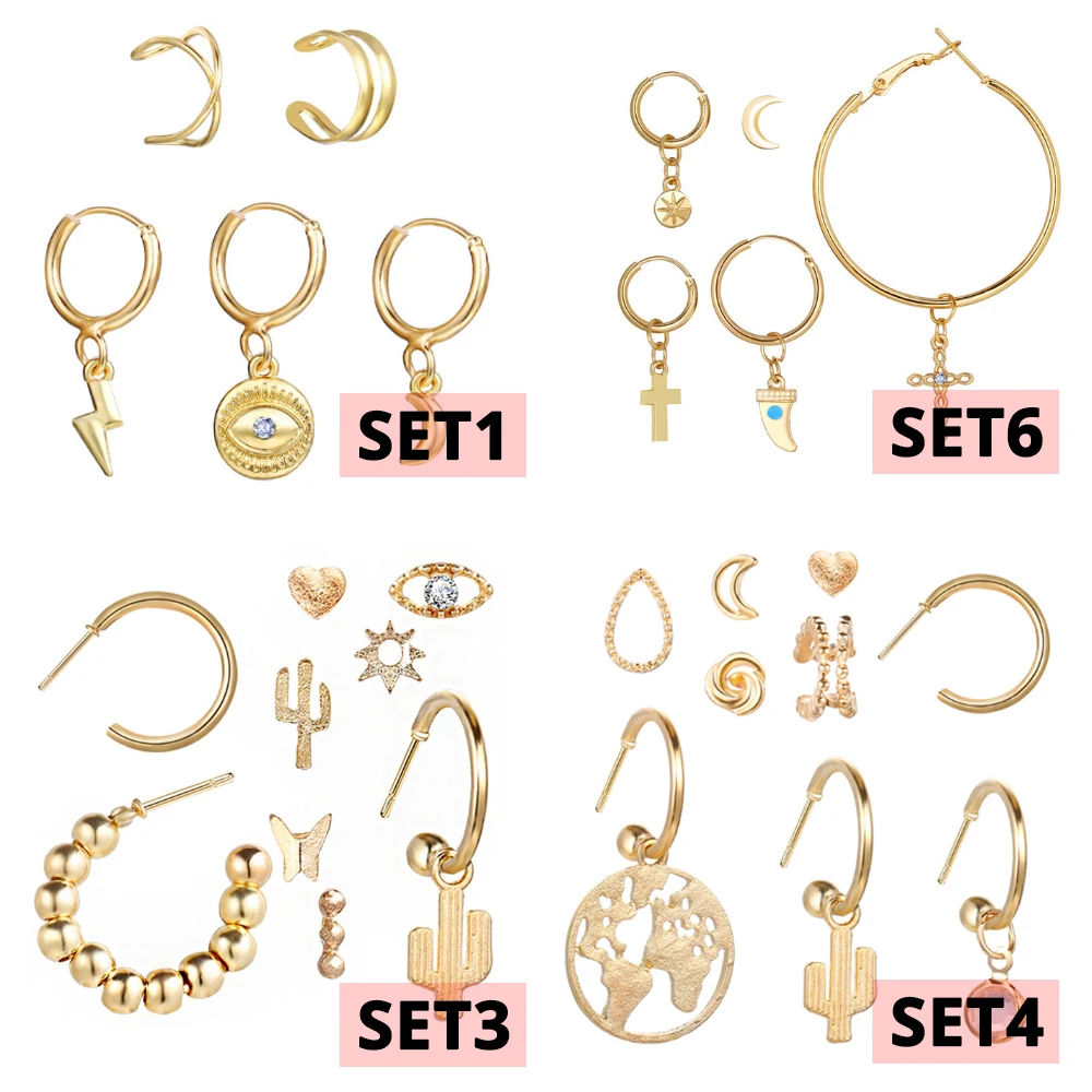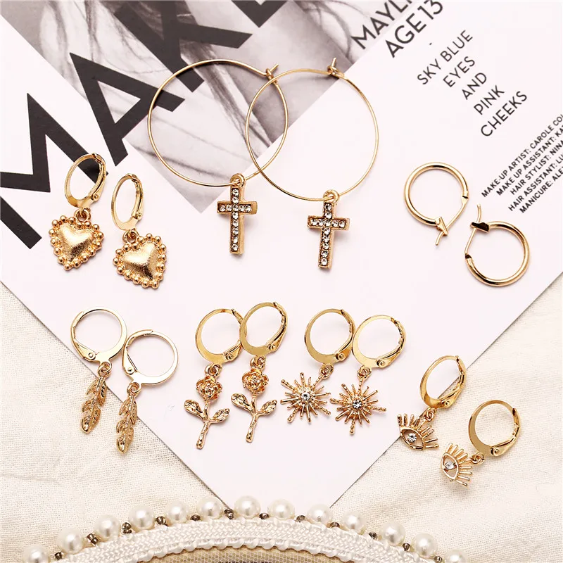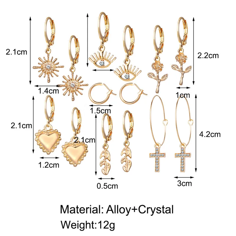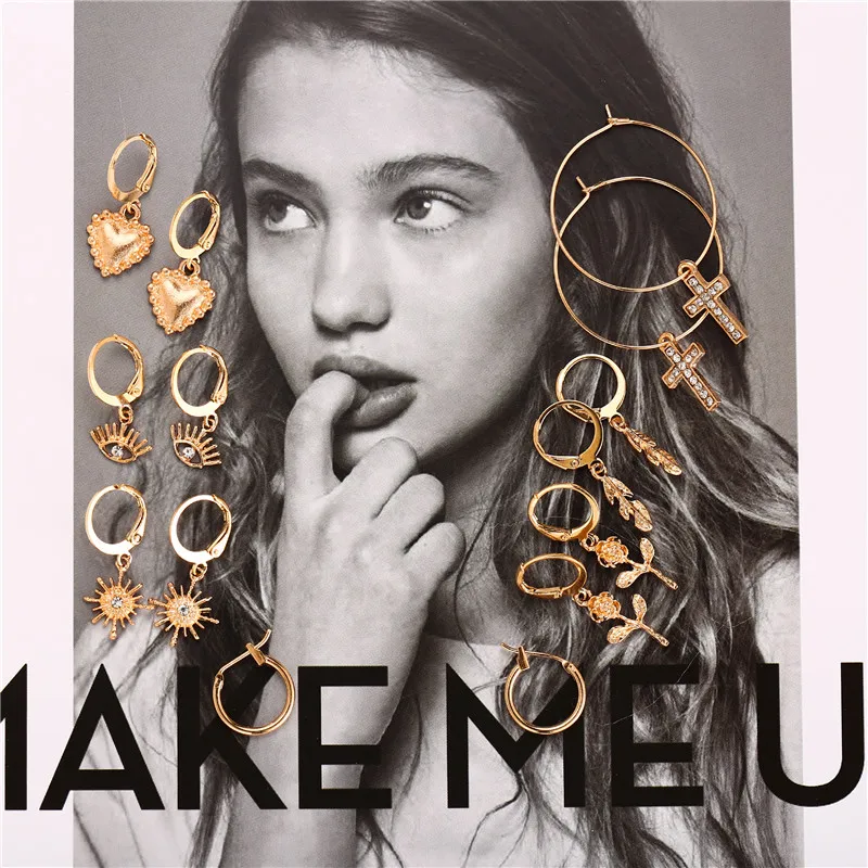 Набор женских сережек IF ME, Винтажные серьги-кольца, Креста, звезды, сердца, глаза, кристаллы, 2020, геометрической формы, в стиле бохо