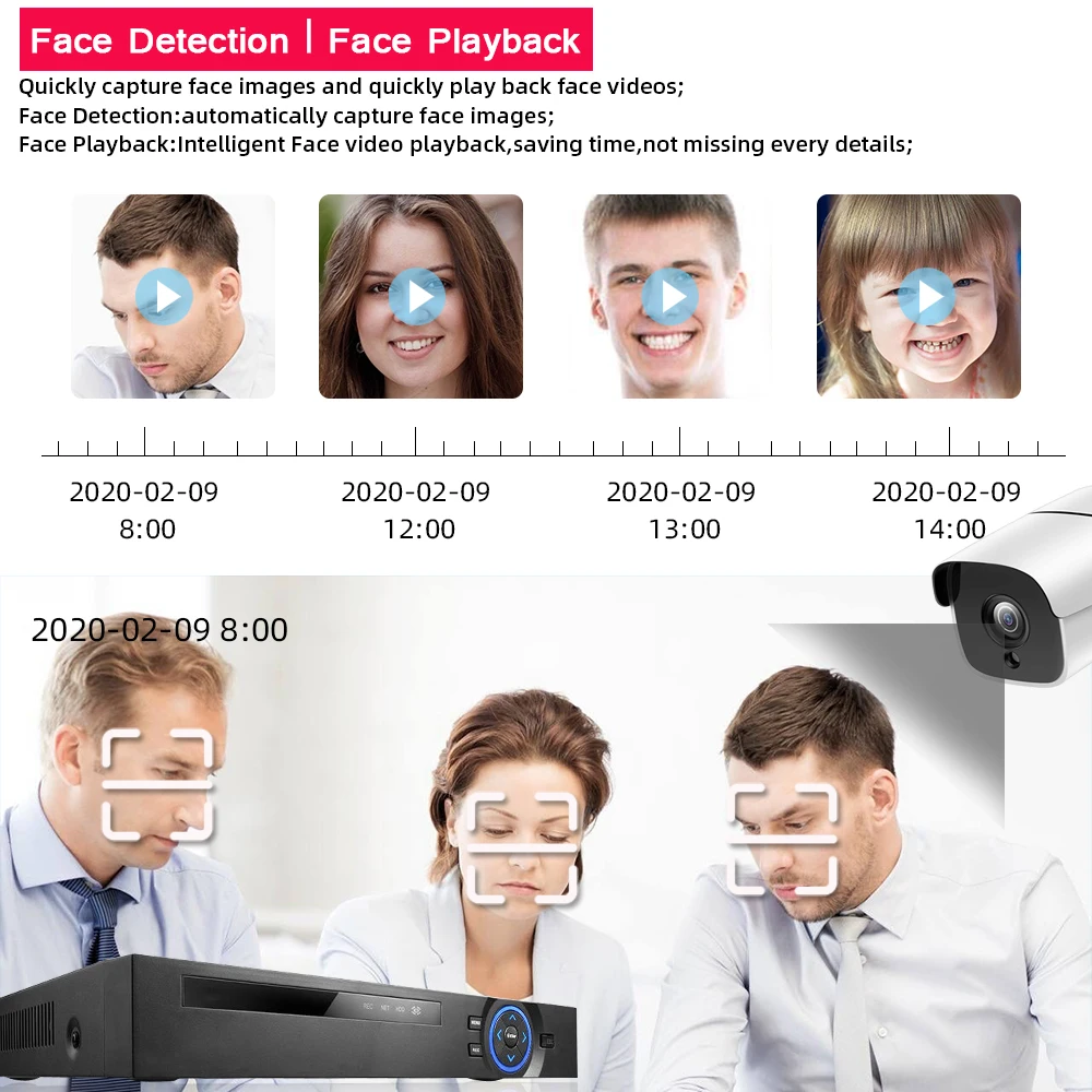 2,POE NVR и POE ip-камера, все H.265 5MP, поддержка записи лица, распознавания лица и воспроизведения лица;