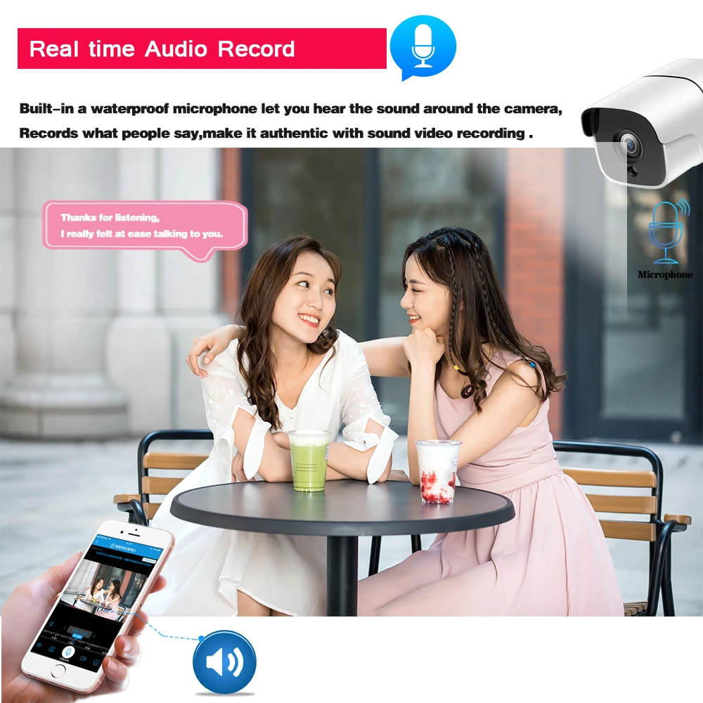 Встроенный водонепроницаемый микрофон позволяет слышать звук вокруг камеры,Записывает то, что говорят люди, делает это аутентичным со звукозаписью.