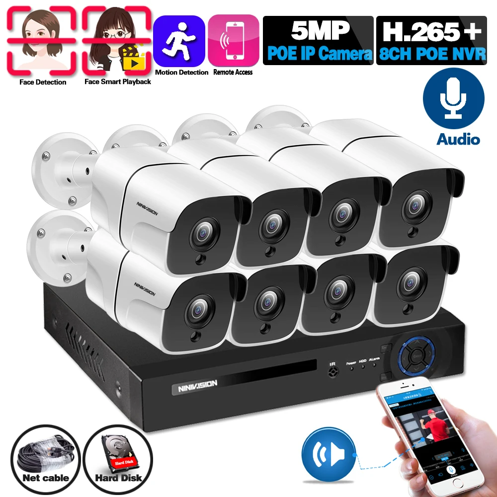 HD 5MP POE NVR Kit 8CH CCTV Camera System Audio Outdoor IP Camera Home Security Alarm NVR Kit Night Vision наружняя камера видеонаблюдения POE