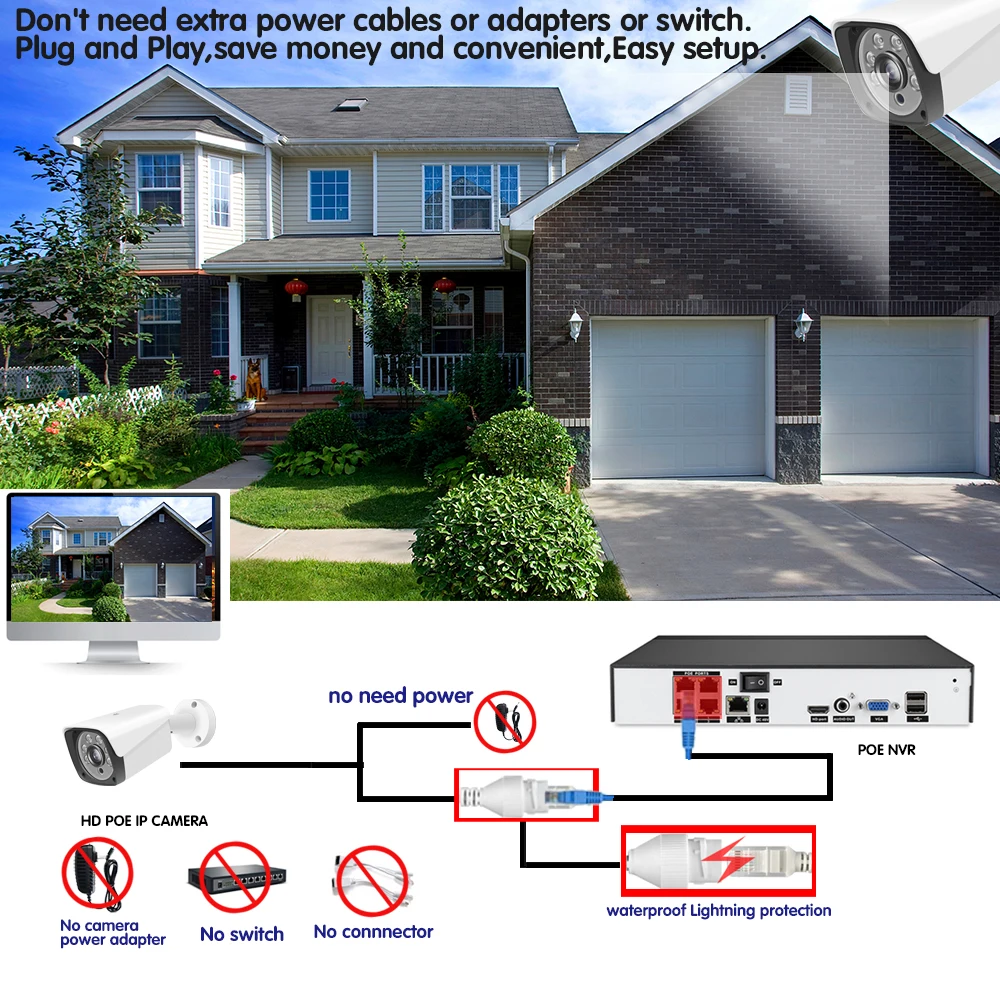 Нет дополнительных кабелей питания или адаптеров, просто подключив ip-камеру к NVR с помощью одного кабеля, вы можете легко завершить установку без знания о компьютере или сети и начать наслаждаться супер простым мониторингом среди вашего смартфона, планшета или ПК.