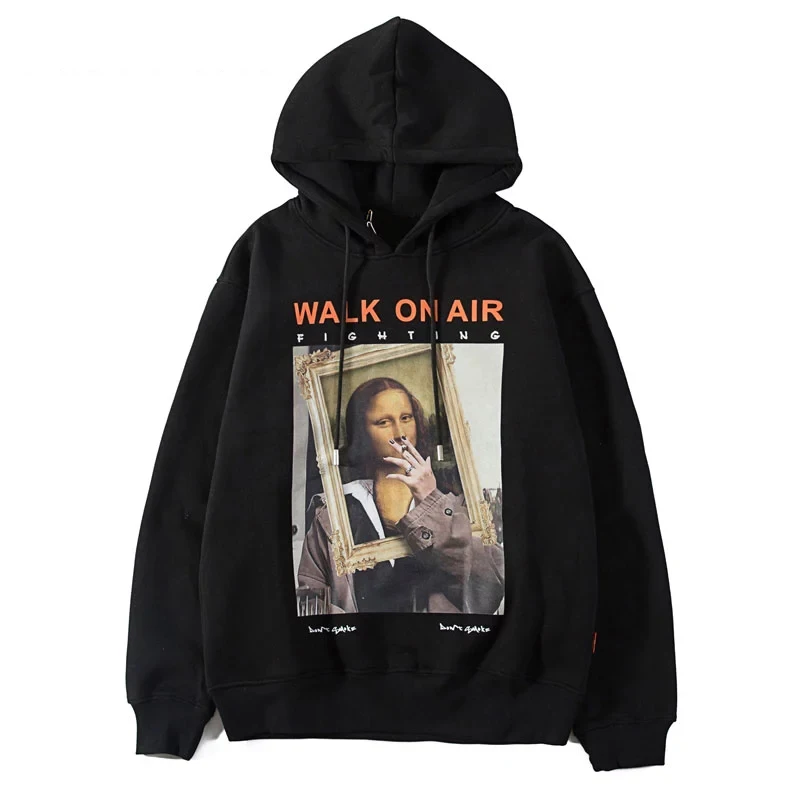 Флисовая мужская толстовка с забавным принтом Моны Лизы для курения, пуловер, Свитшот в стиле Харадзюку, Женские повседневные топы