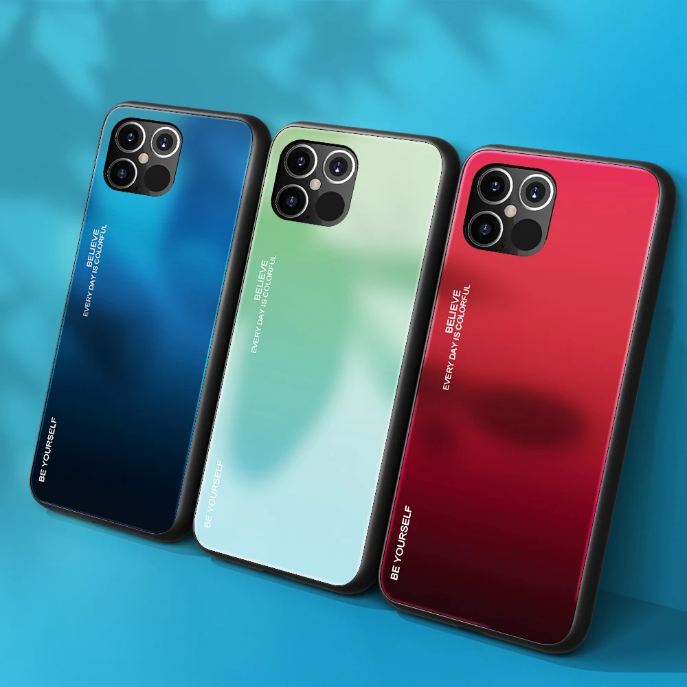 Чехол из закаленного стекла для iPhone 13 12 11 Pro Max X XS Max XR 7 8 6s Plus, градиентный чехол для iphone 12 Pro Max XR 12 13 Mini
