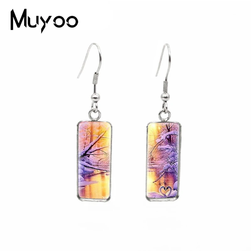 2020 новые серьги с картиной маслом в зимнем ландшафте, Модные прям...