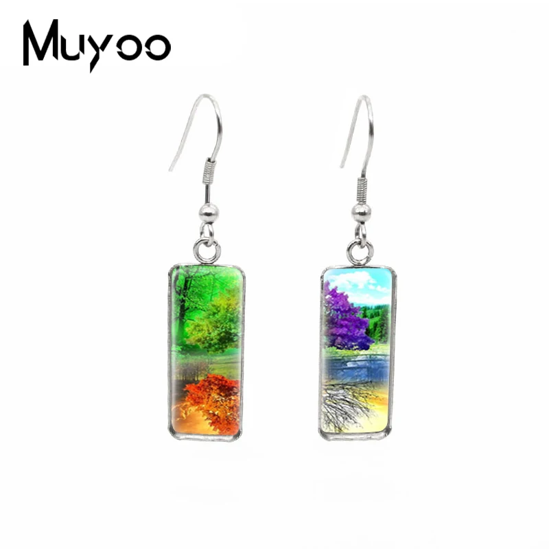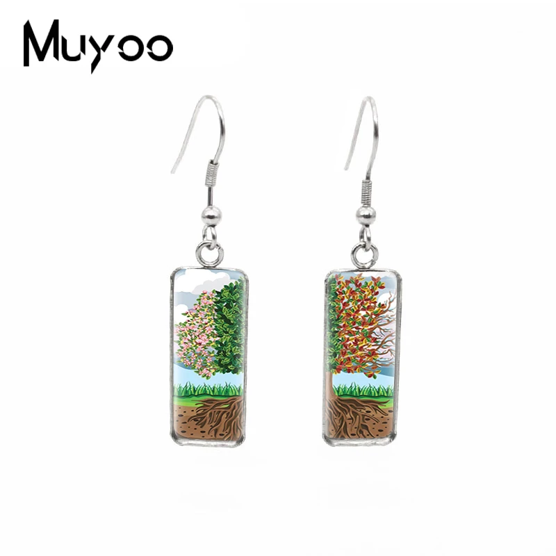 Винтажные серьги HZSHINLING с деревом и листьями, квадратные серьги...
