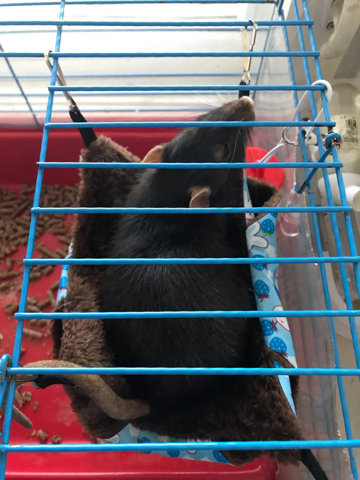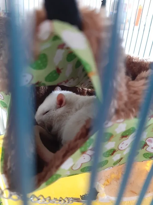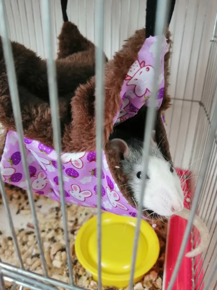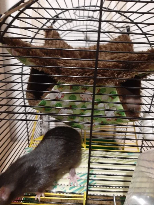 Это чудо, а не гамак. Взяла размер s, боялась, что будет маленьким нашему крыске, но вроде подошёл. Мелкий уже во всю залазит в него, хотя я только повесила. Надеюсь, он не сгрызет его в ближайшее время. Спасибо большое, я очень рада!)