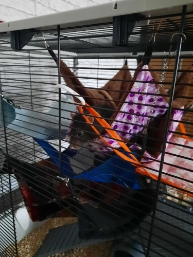 Очень порадовала супер быстрая доставка, хороший большой гамак. Шиншилла в нём спит.