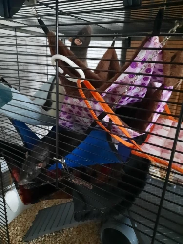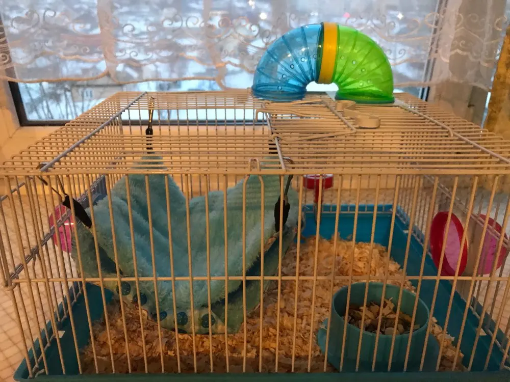 Гамак пришел быстро.Шикарный, большой(я заказывала самый максимальный).Моя крыска очень довольна, теперь не вылазит оттуда, греется)Что огорчило, это то, что моя засранка на второй день отгрызла петли держатели и прогрызла дополнительный потайной ход в гамаке.