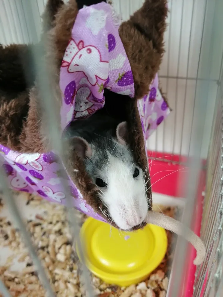 Только купили, крыса сразу полезла в него. Сейчас спит) ❤