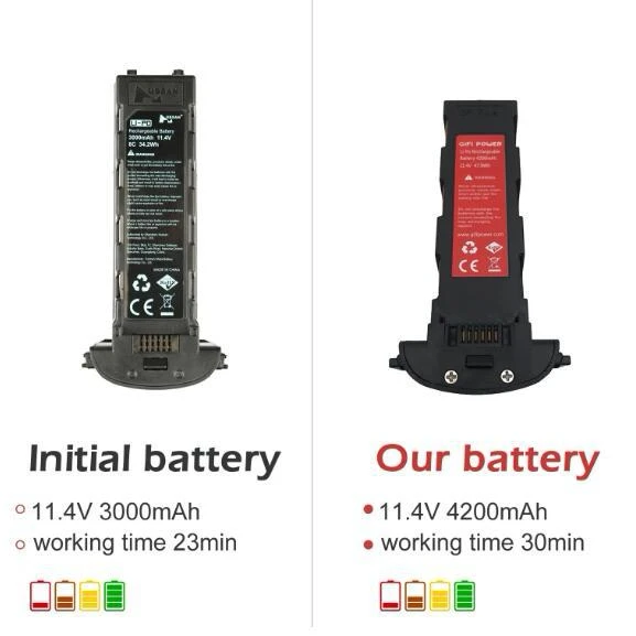 Длительное Время полета: около 30 минут, время зарядки: около 180 минутМодульный литий-полимерный аккумулятор 11,4 в 4200 мАч для дрона Hubsan Zino H117S Wifi FPVЗащита от перезарядки, защита от короткого замыкания, перезаряжается до сотен разПри возникновении любых проблем, пожалуйста, без колебаний свяжитесь с нашим магазином. Честь служить вам