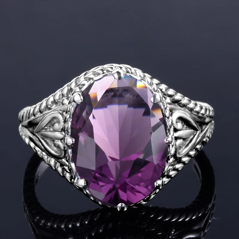 Кольца из стерлингового серебра 925 пробы, женские индивидуальные кольца для девочек, круглые аметистовые драгоценные камни, винтажные женские ювелирные изделия с ручной резьбой
