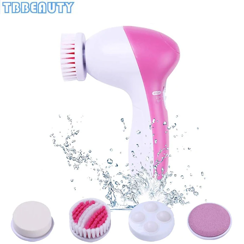 Очищающая щетка для лица, массажер для лица с 5 головками для лица, очищающая шайба, отшелушивающая, глубокое очищение, Вибратор