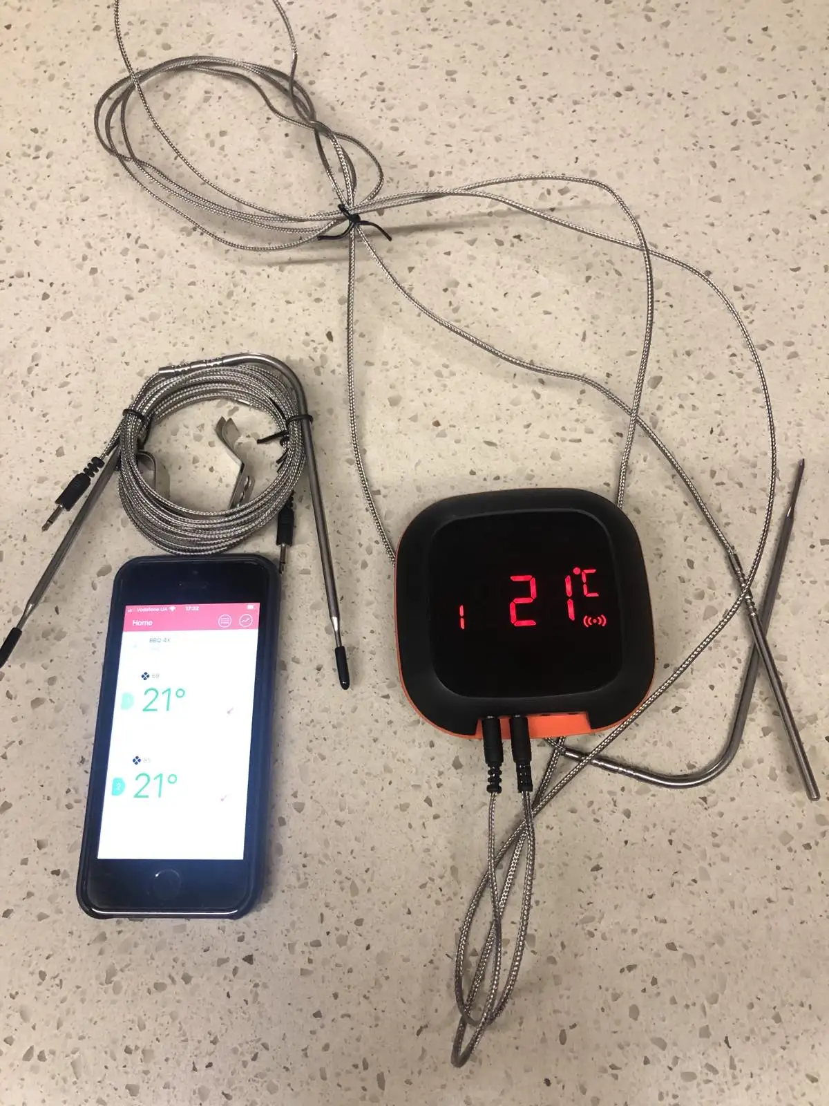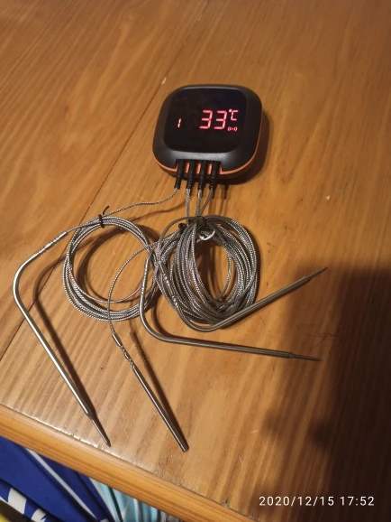 Нормальный термометр! Очень быстрая доставка: 11.12 заказал - 17.12 получил. Всем хочу напомнить: При подключении с помощью программы BBQ GO по Блютус ОБЯЗАТЕЛЬНО ВКЛЮЧАЙТЕ ГЕОЛОКАЦИЮ (GPS) на телефоне, иначе термометр не подключится! Этой рекомендации в Руководстве почему-то нет. Продавца рекомендую!