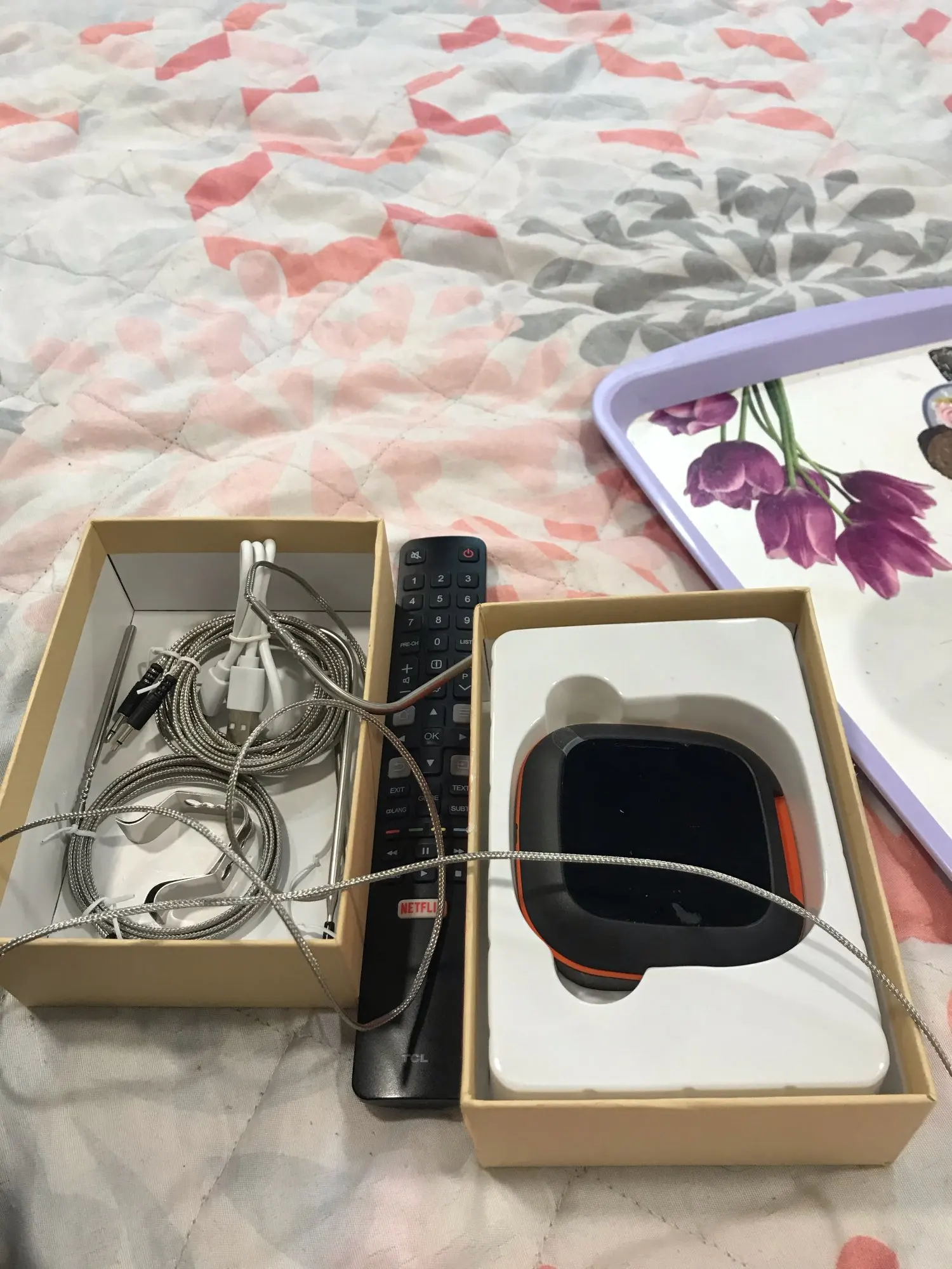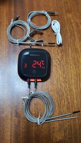 Супербыстрая доставка, товар пришёл даже на день раньше. Быстро разобрался, в приложении есть уже готовые температурные решения, но есть возможность добавлять свои. Настроил зонды на варку ветчины и так как мясо подошло сразу протестировал. Ветчина получилась великолепно, хорошо сварена и сочная со слезой. По предыдущим отзывам очень боялся замочить провод, но всё обошлось и уже приноровился. Я заказывал на два зонда, входов всё равно 4 и если мне будет нужно просто докуплю зонды. Устройством доволен, рекомендую.