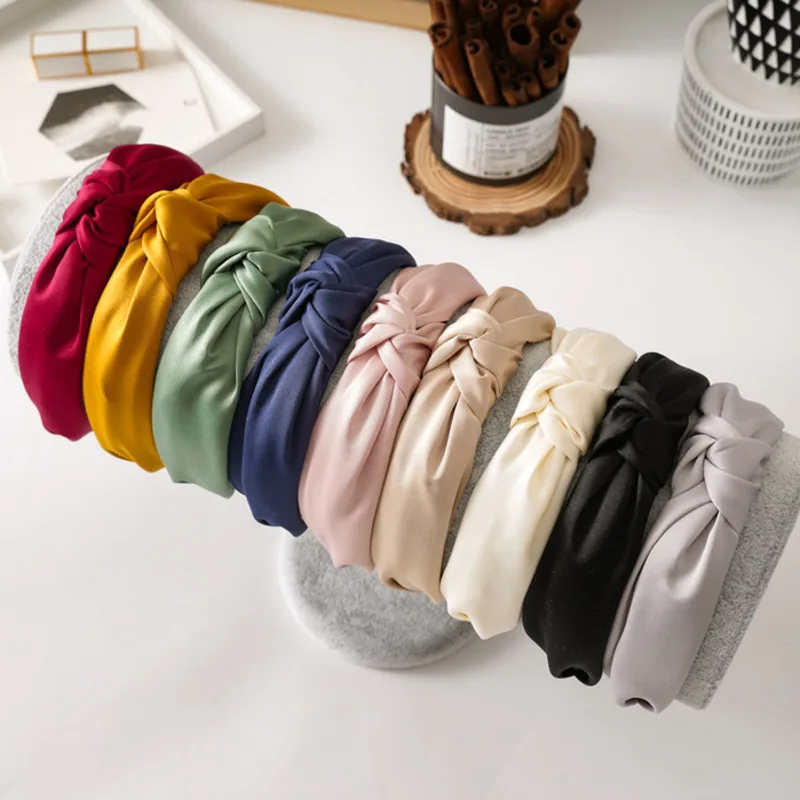 Ободок для волос Женский, Шелковый, однотонный, широкий, 2021