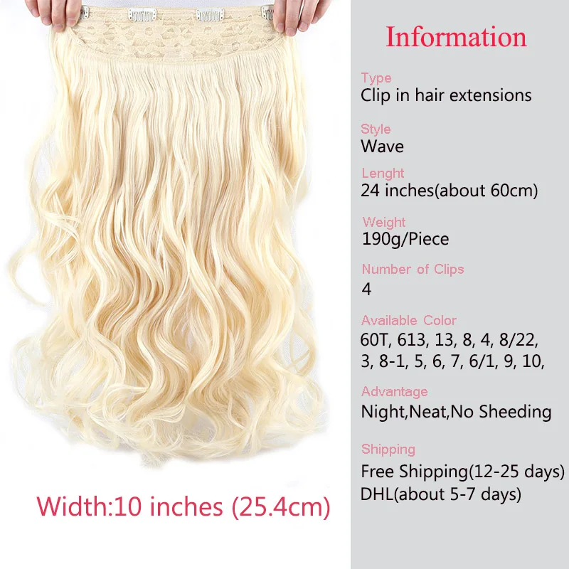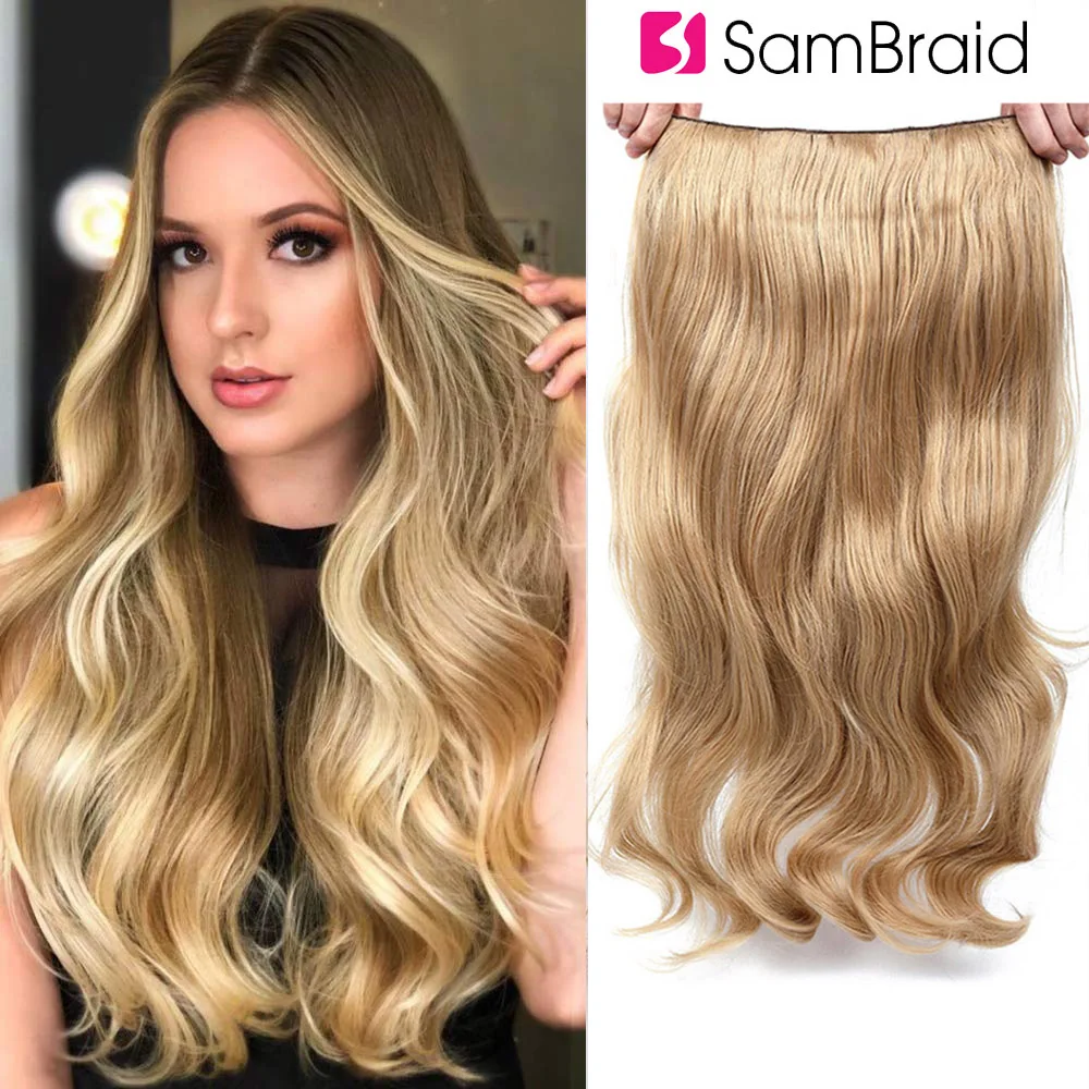Синтетические волосы для наращивания SAMBRAID, 4 зажима в одной части, 24 дюйма, натуральные длинные волосы 190 г для женщин