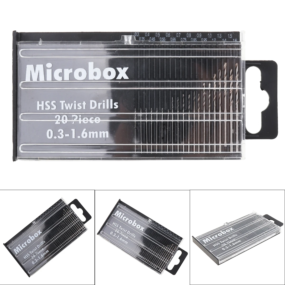 20 шт.компл. прецизионные спиральные сверла Microbox из быстрорежущей стали для рукоделия хобби 0,3-1,6 мм для изделий из древесного пластика, сверление печатных плат