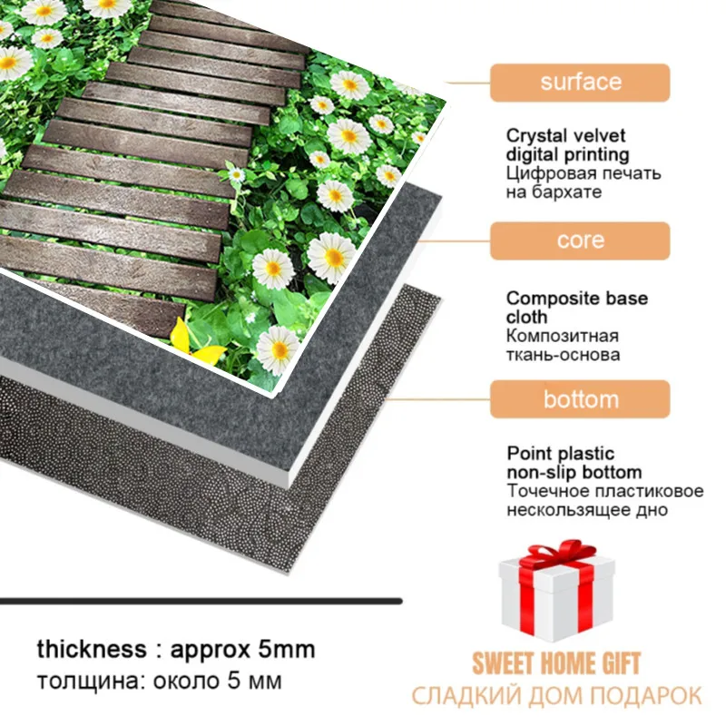 3D ковры в пасторальном стиле, ковер для гостиной, длинный зеленый газон, коридор, стандартная детская кровать, дверной коврик для ванной