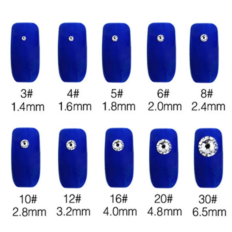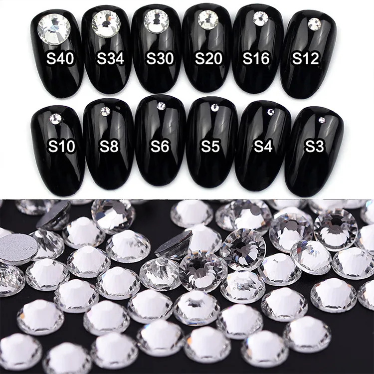 Стразы для ногтей, стеклянные стразы, плоские стразы для дизайна ногтей, вверх, SS2, 3, 4, 5, 6, 8, 10, 12, 16, 20
