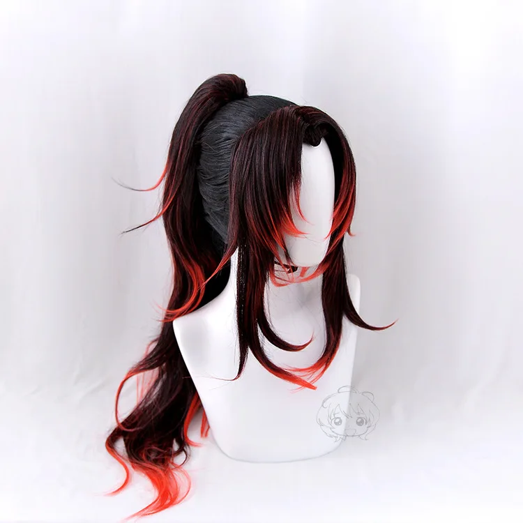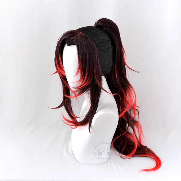 Demon Slayer Kimetsu No Yaiba Kokushibou Косплей Черный Красный Омбре конский хвост Жаростойкие синтетические волосы Хэллоуин + бесплатная шапочка для парика