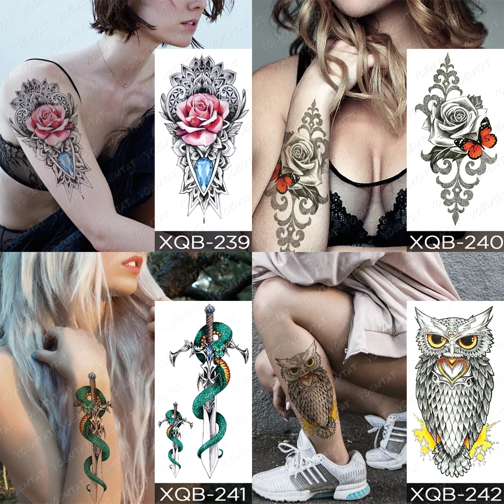 Водостойкая временная татуировка-наклейка Дракон Лотос Слива татуировки розы меч змея боди-арт рука имитация рукава тату для женщин и мужчин