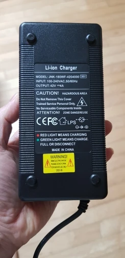 Зарядное устройство для электровелосипеда прибыл быстро. Тем не менее, он не работает так, как он был бы dore, потому что даже если он подключен к электрической розетке 220 В и зеленый свет включен, когда терминал применяется к батарее (разряжен), красный светодиодный индикатор заряда не активируется. Тестирование выхода RCA показывает, что ток составляет 41 вольт, в то время как он должен быть гораздо ниже, когда отключен от батареи.