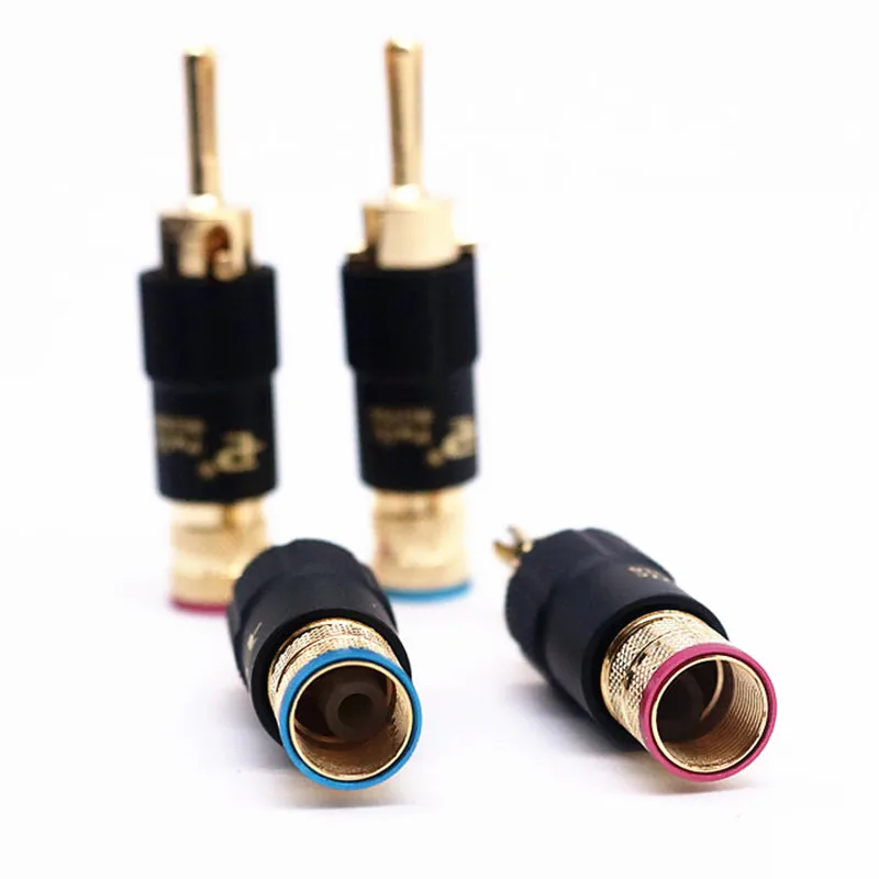 8 шт., самоблокирующиеся вилки для аудиоусилителя, 24 К золота, чистая медь