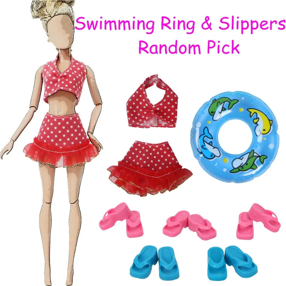 7 шт. = 1 красный купальник + 1 случайное плавательное кольцо + 5 шт. тапочек, обувь, аксессуары, Одежда для куклы Барби