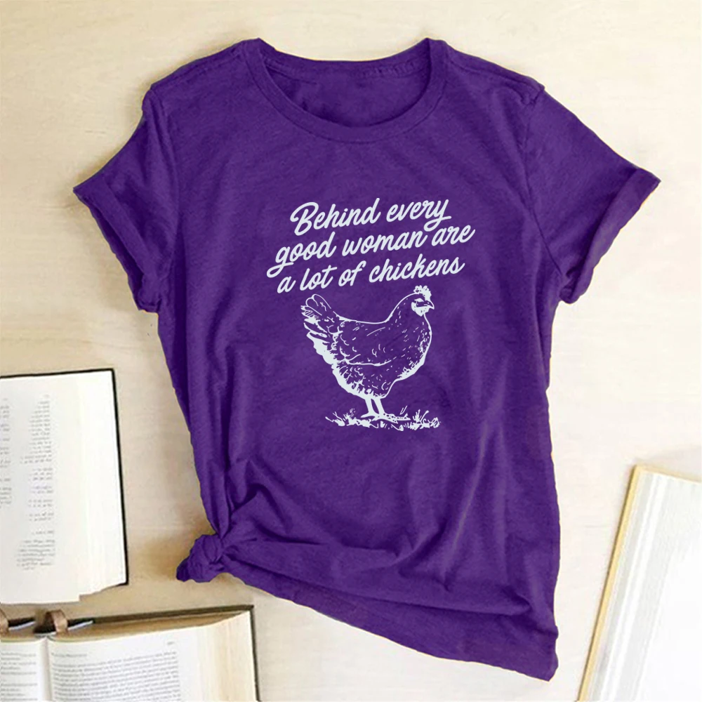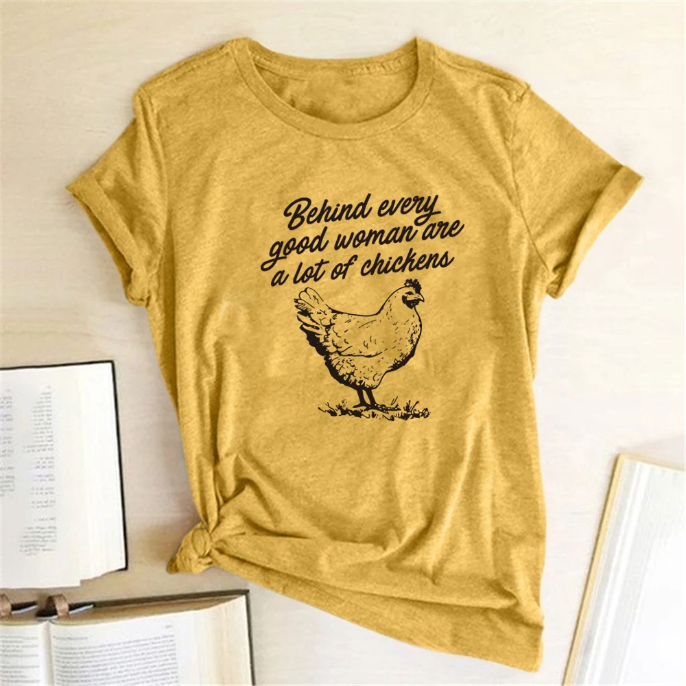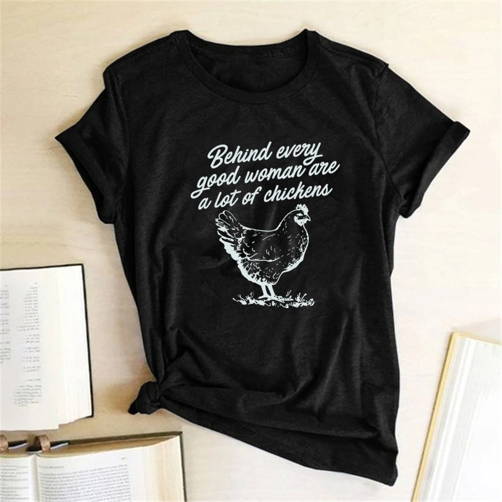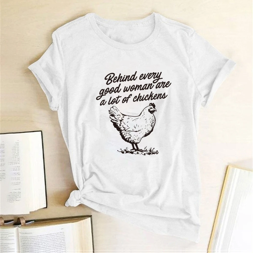 Женские футболки с принтом цыплят за каждую хорошую женщину, летняя одежда, графические футболки, Забавные топы с круглым вырезом для дам