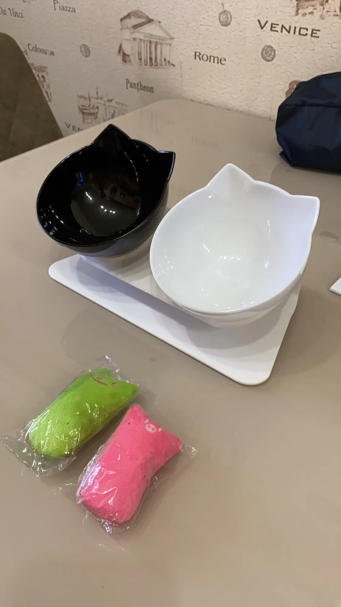 спасибо продавцу за быструю отправку и доставку, мисочки были хорошо упакованы, котик опробовал - удобные.