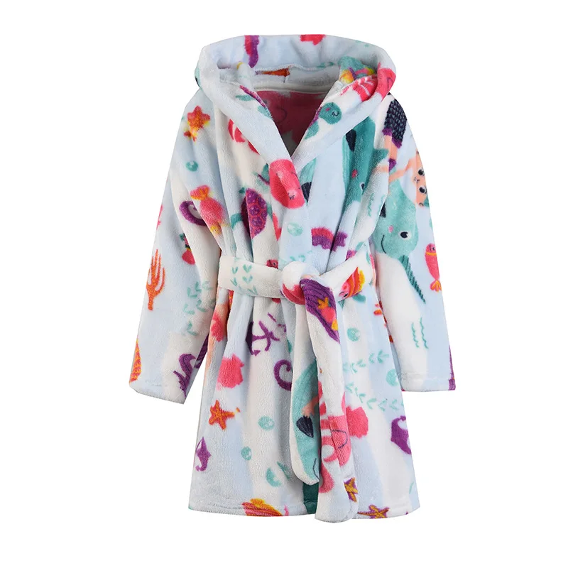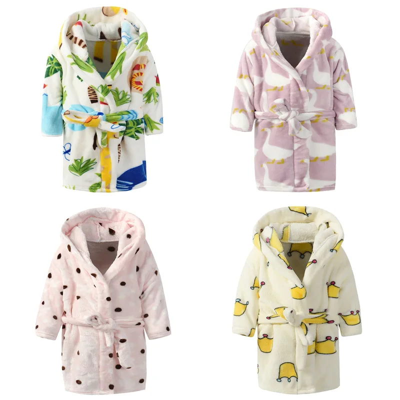 Халат детский мультяшный с капюшоном, мягкая ночная рубашка для дев...