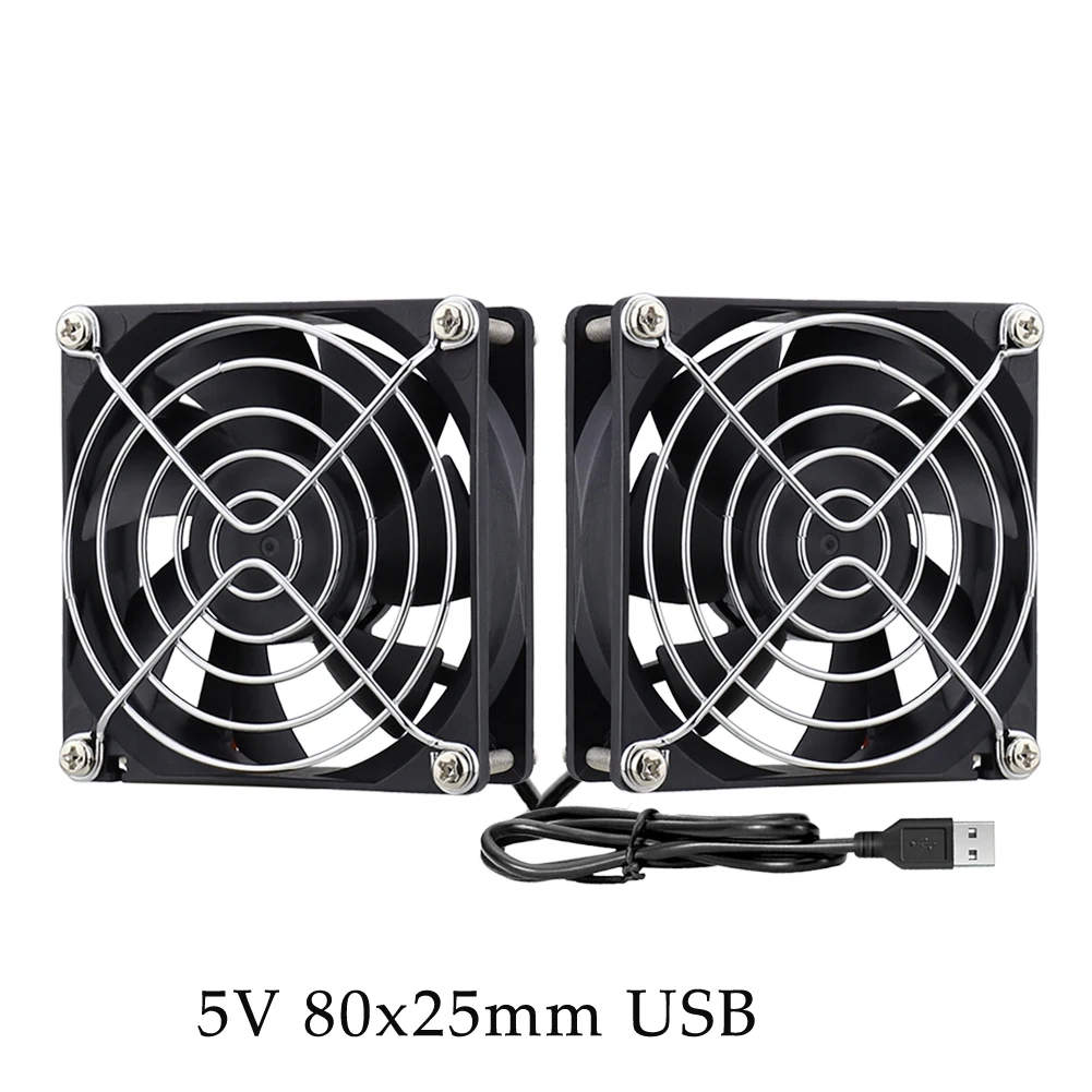 80 мм USB вентилятор 2 в 1 Компьютерный Вентилятор 5 в 80 мм вентилятор двойной USB PC вентиляторы с металлическим грилем Охлаждение для ноутбука PS4 TV Box AV cabint